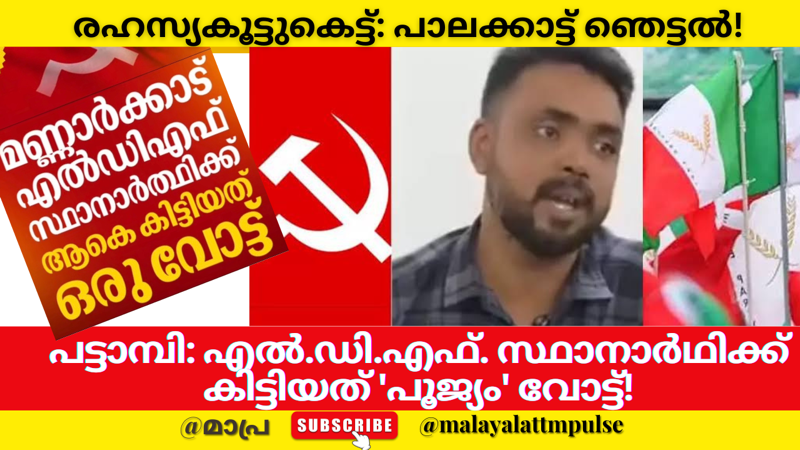 തദ്ദേശ തിരഞ്ഞെടുപ്പിൽ പാലക്കാട് ജില്ലയിലെ പട്ടാമ്പി, മണ്ണാർക്കാട് നഗരസഭകളിൽ എൽ.ഡി.എഫ്. സ്ഥാനാർഥികൾക്ക് പൂജ്യം, ഒരു വോട്ട് മാത്രം ലഭിച്ചതിൽ ദുരൂഹത. യു.ഡി.എഫിനെ തോൽപ്പിക്കാൻ സി.പി.എം. വെൽഫെയർ പാർട്ടിയുമായി വോട്ട് കച്ചവടം നടത്തിയോ? വോട്ട് ചോർച്ചയുടെ ഞെട്ടിക്കുന്ന കണക്കുകൾ പുറത്ത്. രാഷ്ട്രീയ ലോകത്തെ ചൂടുപിടിച്ച ചർച്ചകൾ കാണുക.
