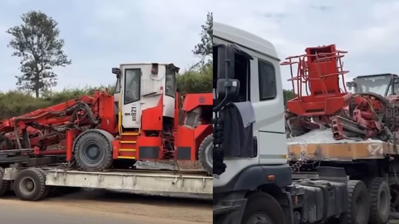 തുരങ്കം പാറ തുരക്കുന്നതിനായി ഉപയോഗിക്കുന്ന രണ്ട് അത്യാധുനിക ബൂമർ മെഷീനുകൾ വയനാട്ടിലെത്തിയിരിക്കുന്നു. ഉത്തരാഖണ്ഡിൽ നിന്നാണ് 15 ദിവസത്തെ യാത്ര കഴിഞ്ഞ് മെഷീനുകൾ എത്തിച്ചത്.